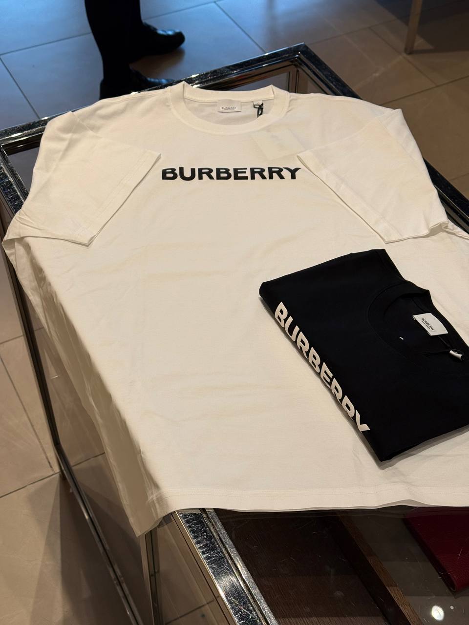 Классические футболки Burberry с коротким рукавом и круглым вырезом горловины. Модели представлены в базовых белом и черном цветах, декорированы крупным контрастным логотипом бренда на груди. Прямой крой обеспечивает комфортную посадку и универсальность в повседневных образах. Состав: 100% хлопок.