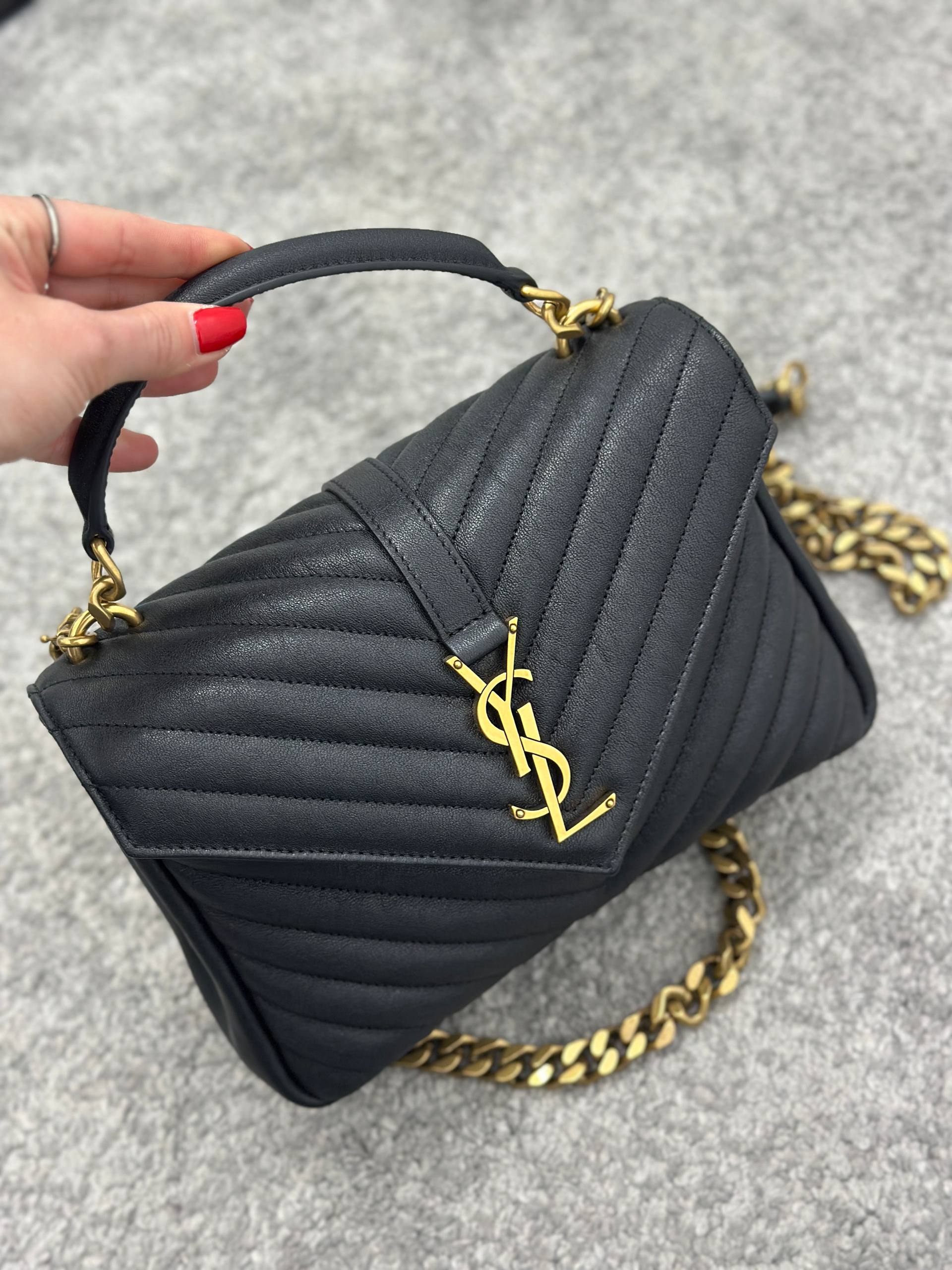 Элегантная женская сумка Saint Laurent в классическом черном цвете. Модель выполнена из высококачественной стеганой кожи с диагональной прострочкой. Лицевая сторона декорирована культовым золотистым логотипом-монограммой YSL. Сумка имеет практичную верхнюю ручку и длинный плечевой ремень в виде массивной цепочки золотого цвета. Состав: 100% кожа теленка, металлическая фурнитура.