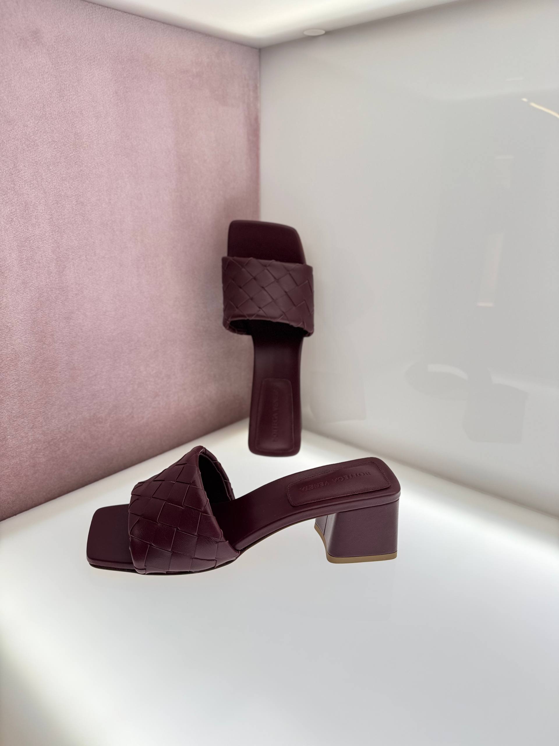 Элегантные женские мюли бордового цвета. Модель выполнена из мягкой кожи с использованием знакового плетения Intrecciato на широком ремешке. Обувь имеет современный открытый квадратный мыс и устойчивый средний каблук прямоугольной формы. На внутренней стельке расположено тиснение с логотипом Bottega Veneta. Состав: 100% натуральная кожа.