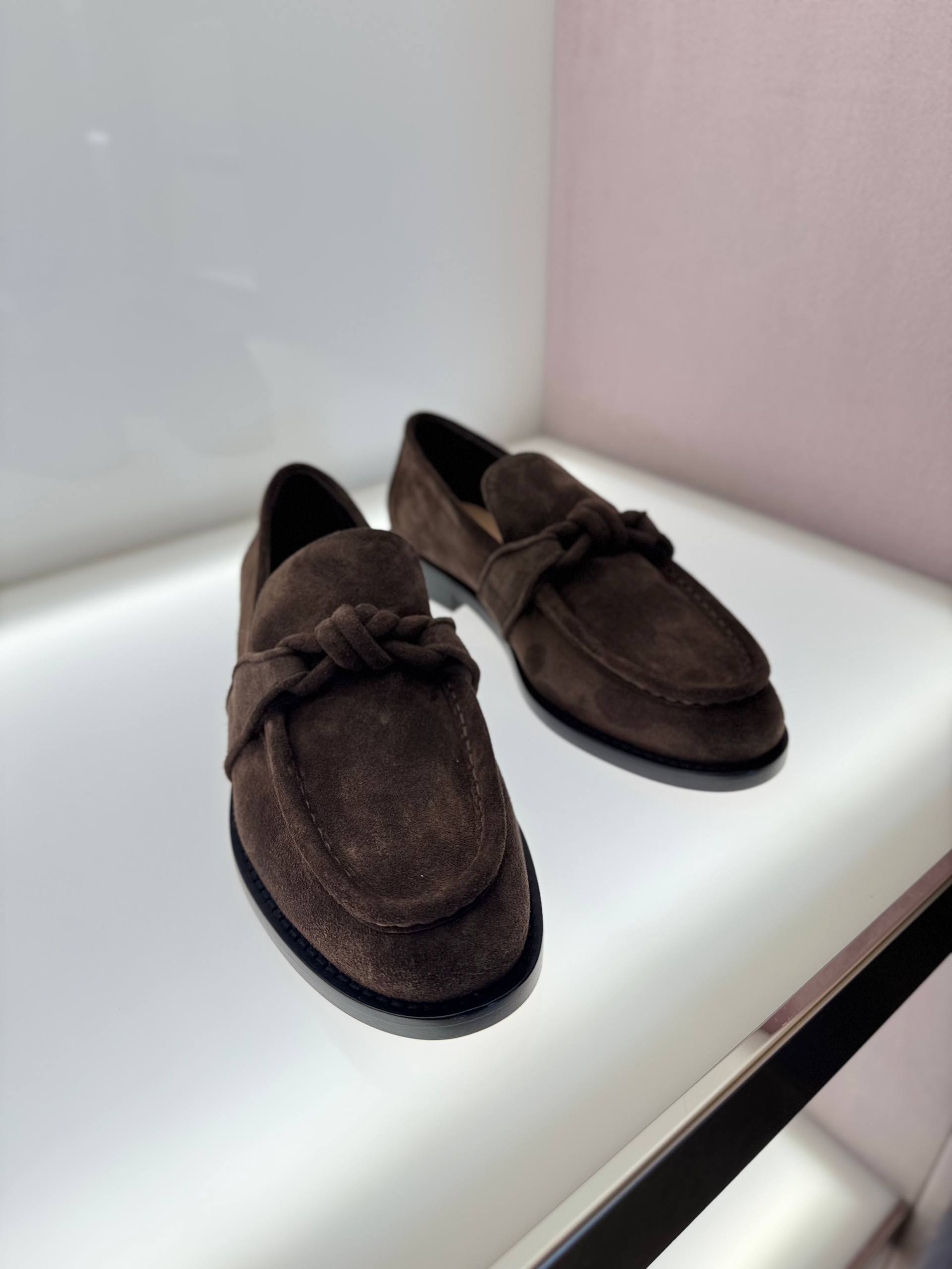 Элегантные женские лоферы глубокого коричневого цвета, выполненные из высококачественной натуральной замши. Модель отличается декоративным узлом на союзке, придающим обуви изысканный вид. Закругленный мыс и классический силуэт делают их универсальным дополнением к гардеробу. Состав: 100% натуральная замша, внутренняя отделка из 100% кожи, подошва из износостойкого полимера.