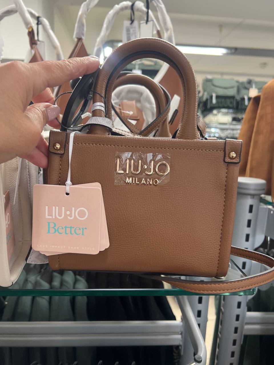 Элегантная женская мини-сумка тоут Liu Jo Milano в коричневом цвете. Модель выполнена из качественной экокожи с зернистой текстурой. Лицевая сторона декорирована металлическим логотипом бренда в золотистом цвете. Сумка оснащена парой жестких ручек и съемным плечевым ремнем для ношения через плечо. Компактный и стильный аксессуар для повседневного образа. Состав: 100% полиуретан, подкладка: 100% полиэстер.