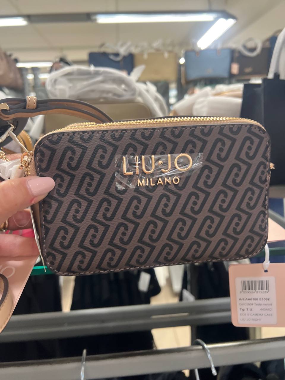 Элегантная женская сумка Liu Jo прямоугольной формы (camera bag). Аксессуар выполнен в коричневом цвете и украшен сплошным черным монограммным принтом по всей поверхности. На лицевой стороне расположен объемный металлический логотип Liu Jo Milano в золотистом цвете. Модель имеет застежку на молнии и регулируемый плечевой ремень. Состав: 100% полиуретан.