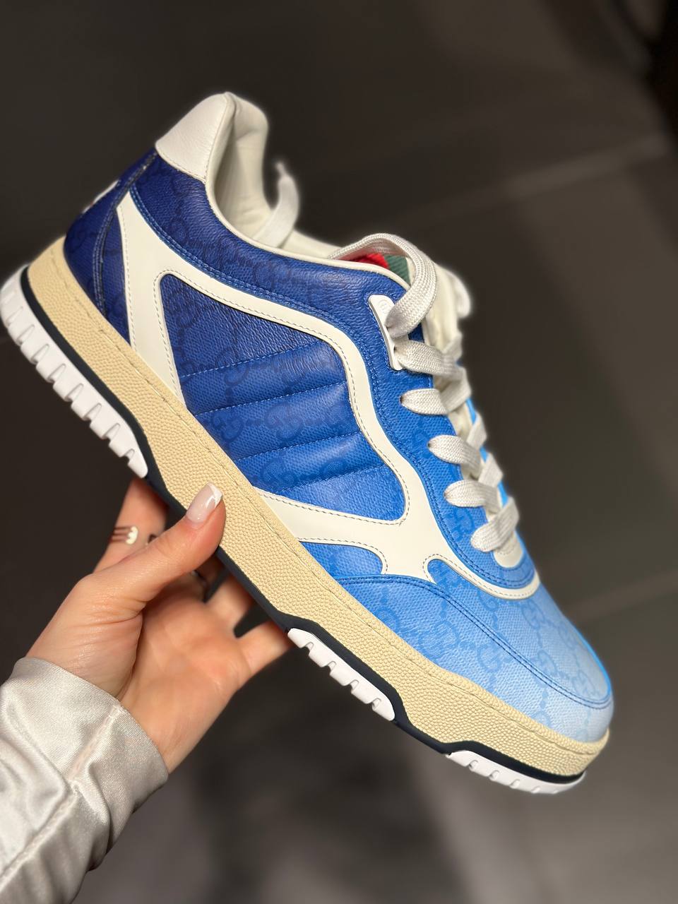 Стильные женские кроссовки, выполненные в сочетании нескольких оттенков синего и белого цветов. Модель декорирована узнаваемым сплошным узором в виде монограммы бренда. Верх изделия изготовлен из натуральной кожи и текстиля. Кроссовки дополнены классической белой шнуровкой и массивной подошвой кремового цвета с резиновым протектором для надежного сцепления. Состав: натуральная кожа, текстиль, резина.